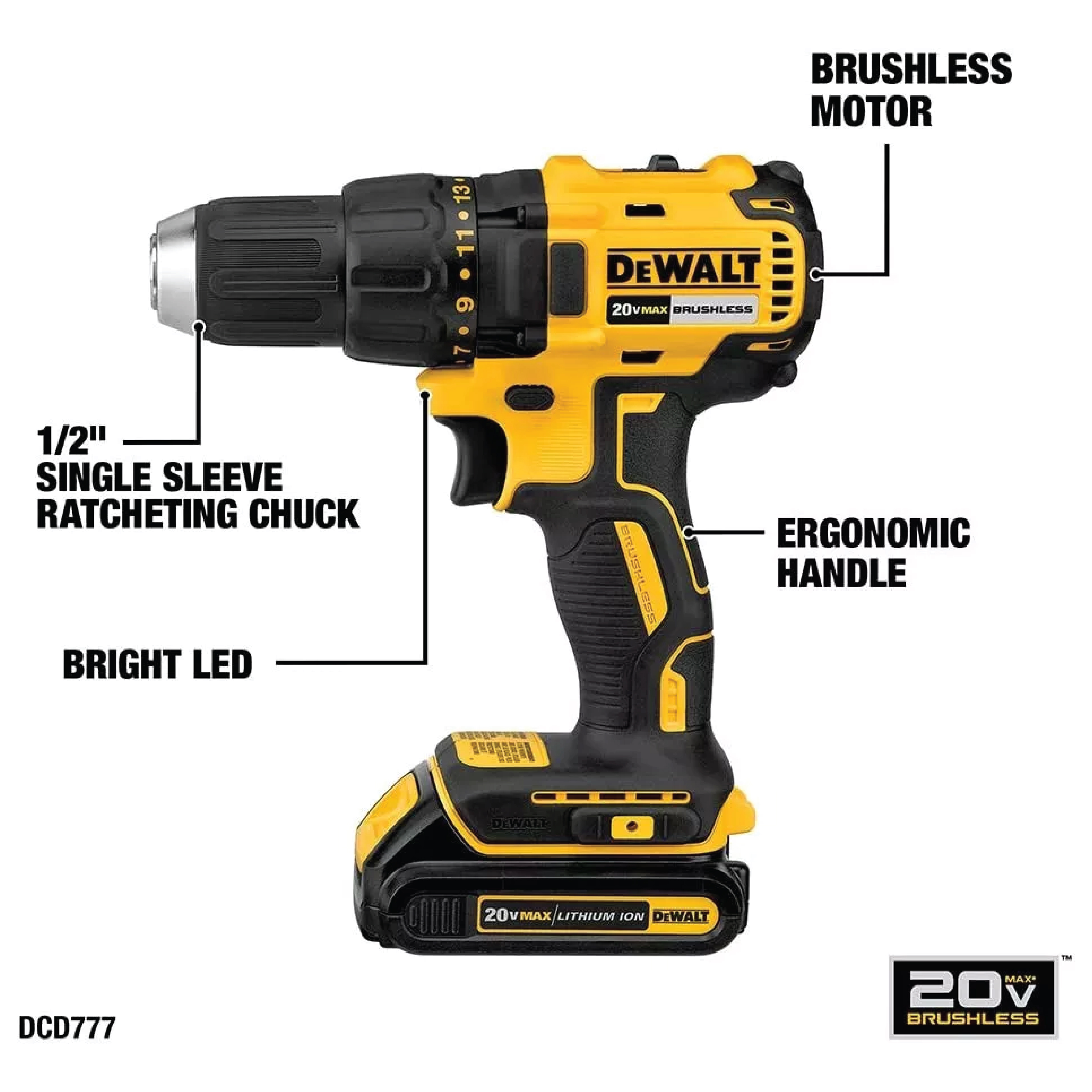 INALÁMBRICO 1/2 SIN ESCOBILLAS DEWALT DCD777C2 20V COLOR AMARILLO